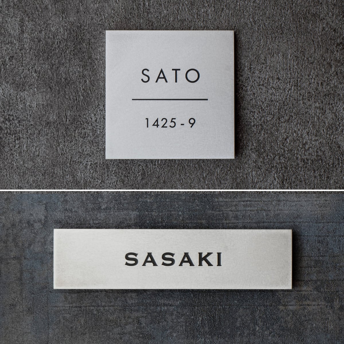 当店のアルミ材表札はどのような素材とも相性良く、しっくりと収まるよう、