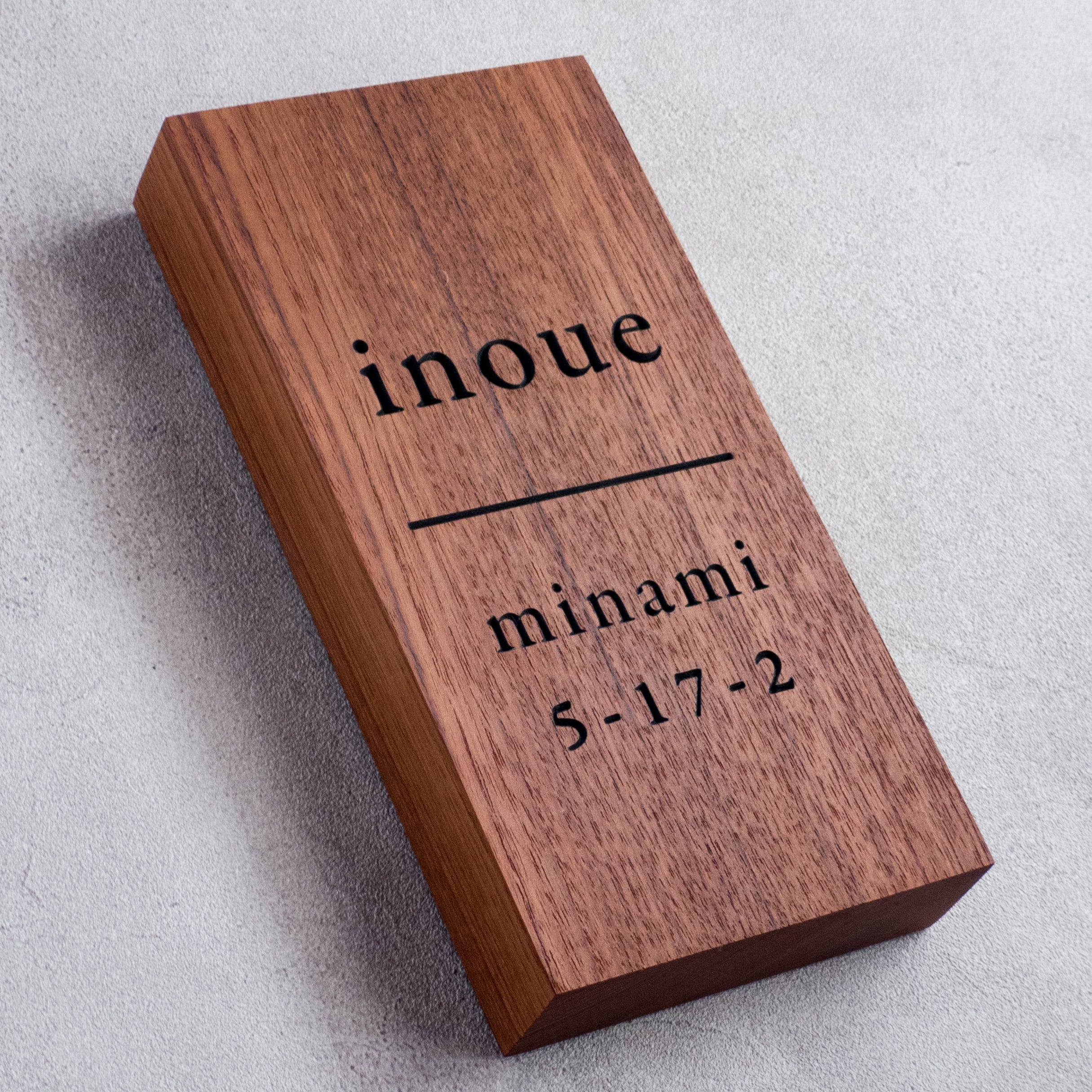 木の表札 銘木チーク彫り文字墨入れ仕上げ